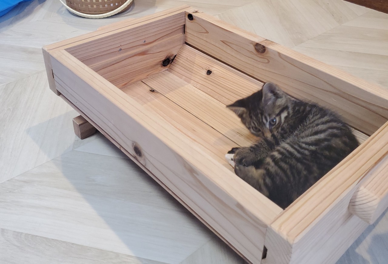 完成後は、「前と同じ場所でくつろいでいます」と実際に猫ちゃんが使っているお写真も送ってくださいました。